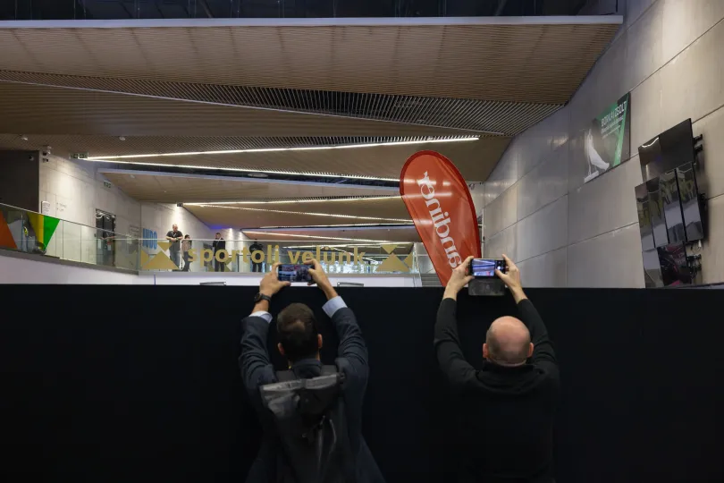 A helyszínen először minden gyanúsan könnyen ment: a visszaigazolt regisztrációikat telefonjaikon vagy papíron a kezükben szorongató érdeklődők hosszú, tömött sorban várakoztak a sportcsarnok előtt, az újságírók pedig nemcsak őket, de a néha mellettük elhaladó meghívottakat is szabadon kérdezhették. A bejutás még ennél is egyszerűbben ment: a sajtó munkatársait egy külön bejáraton engedték be, ahol egy személyi felmutatása után már be is léphettünk a sportcsarnokba.