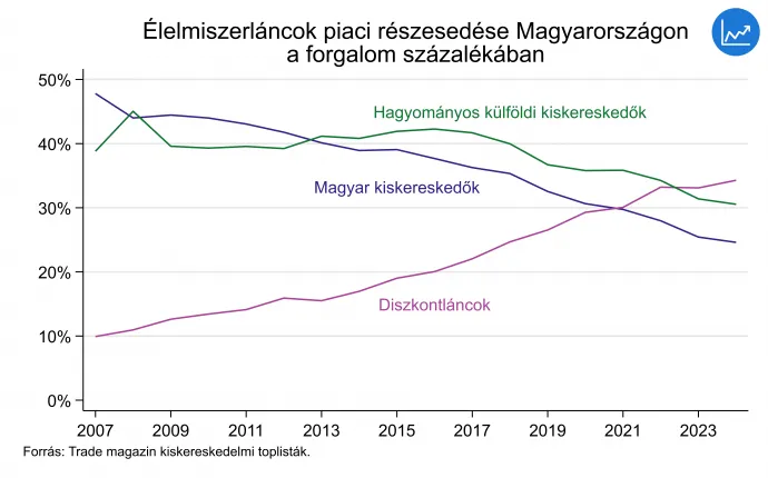 Az Egyesült Királyságban a diszkontláncok terjedése folyamatosan erősítette a versenyt. Magyarországon viszont a diszkontoknak már most is nagy a piaci részesedésük, ezért ha tovább nőnének, az akár a többi szereplő kiszorításához és a verseny gyengüléséhez vezethetne. Jelenleg azonban Magyarországon jóval erősebb a verseny ebben a szektorban, mint az Egyesült Királyságban. Ahogy azt a G7 már korábban megírta, drága lenne a magyar vásárlóknak a kormány bevallott célja, hogy a kiskereskedelmi szektor nagyobb része hazai kézbe kerüljön.